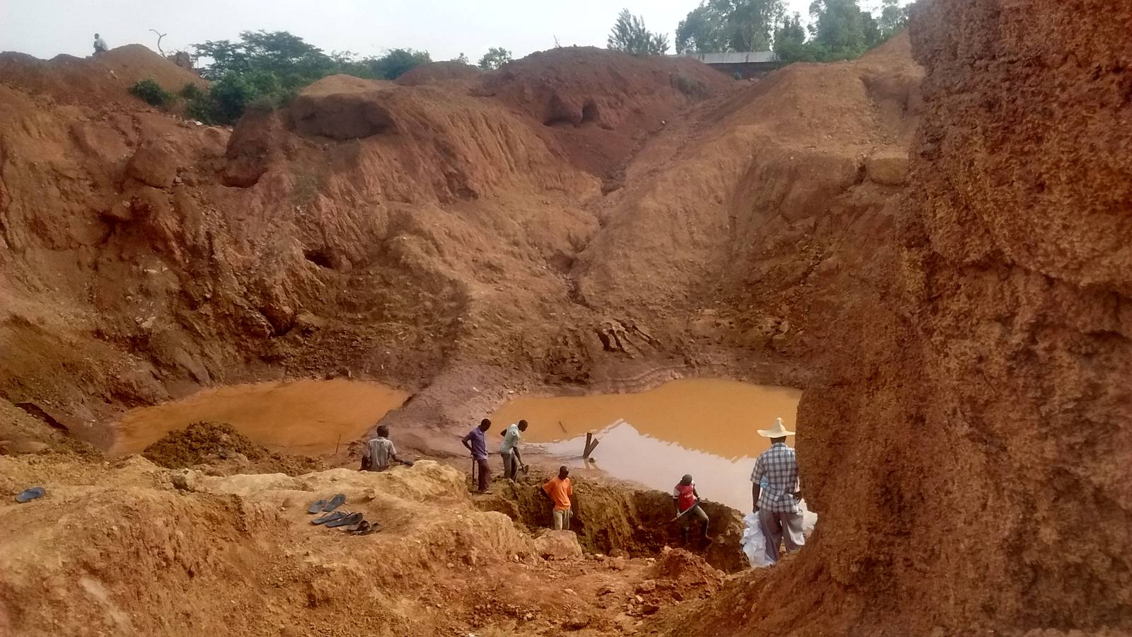 On this day at least 10 people were working and prospecting for gold on this open pit. Difficulties are numerous. Very rich gold ore is down there not far from those miners on the picture. Such rich gold ore contains several grams of gold in just few handful of rocks. There are reasons why people are after it.